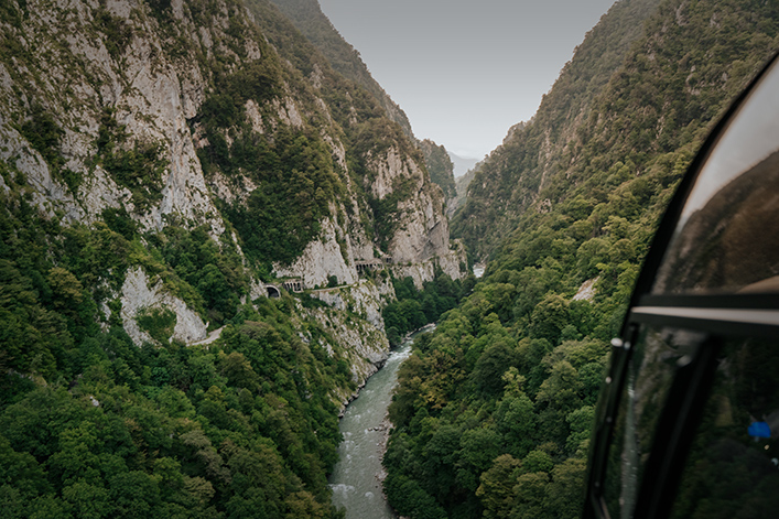 Пролетите над живописным ущельем Ах — цу и увидите Скай парк, самый длинный подвесной пешеходный мост в России! Так же пролетите над Старой краснополянской дорогой, овеянной множеством легенд и увидите развалены древнего храма который по одной из версий построили язычники-друиды в 6-7 веках.