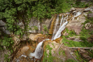 Вам откроется уникальный вид на хребет Аибга, водопад Поликария, г. Черная пирамида и Каменный столб, высота которой составляет 2509 м. над уровнем моря.
